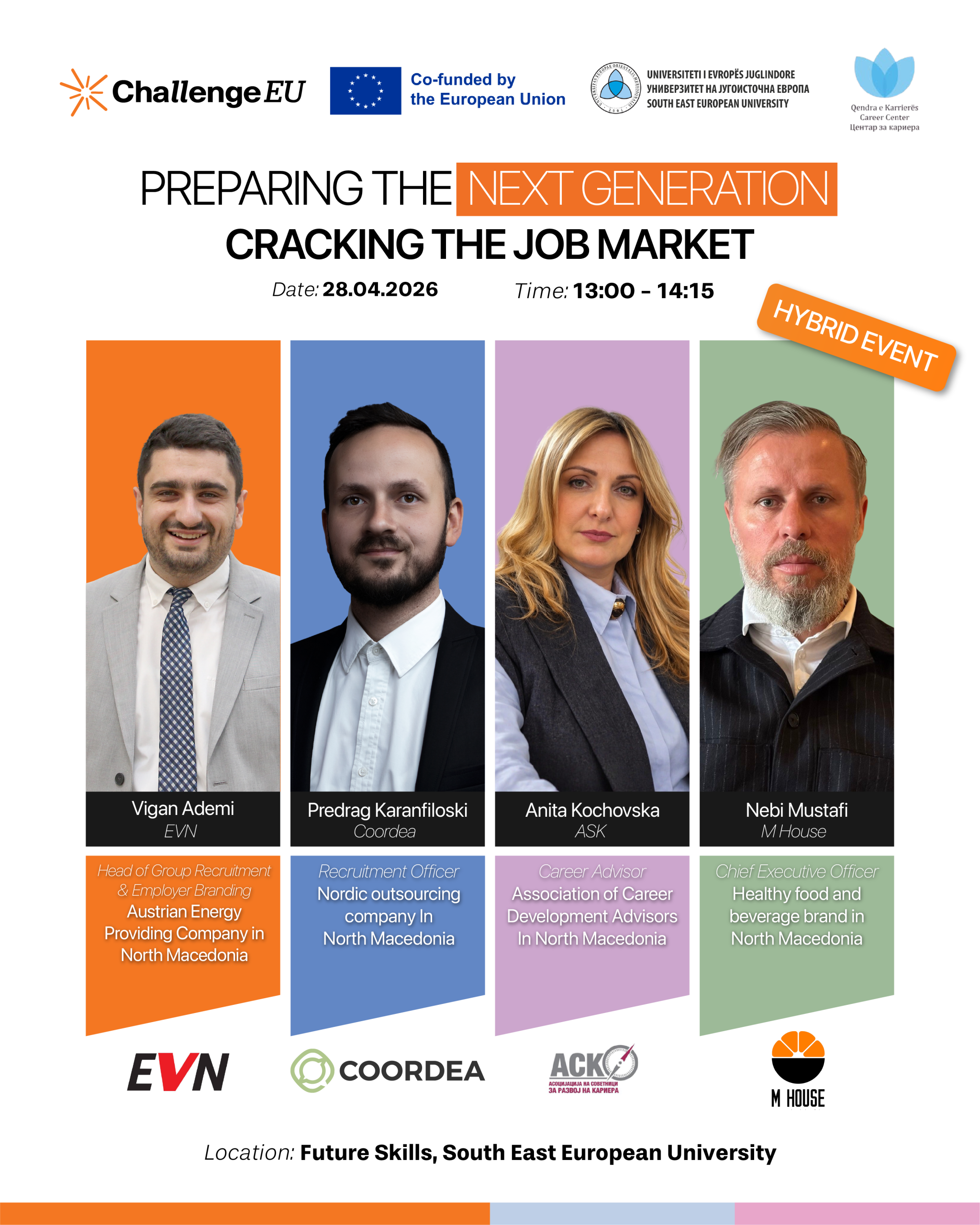 We are pleased to invite you to the event “Preparing the Next Generation: Cracking the Job Market”, organized within the Career Fair at South East European University and the ChallengeEU alliance.